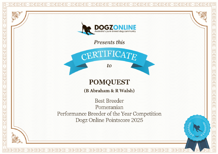 Pomeranian Breeder of the Year every year since 2012,